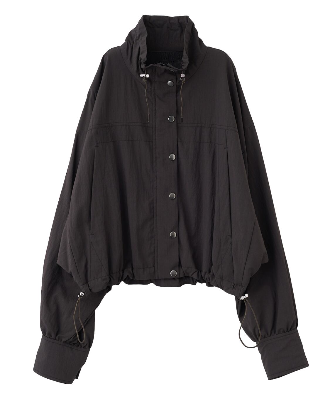 落ち感がありながらもナイロン混で適度なスポーティーさを出してくれるブルゾンです。ドルマンスリーブと裾にたっぷりと入ったギャザーで程よくゆとりのあるふわっとしたシルエットがポイントです。メッシュの裏地付きで暑い時期にも肌離れして着心地良く着用いただけます。さらっと羽織れて、天気や気温の変わりやすい端境期にピッタリの一着です。衿とウエストの内側もドロスト仕様でシルエットを変化させることができ、ゴムなので着心地も◎