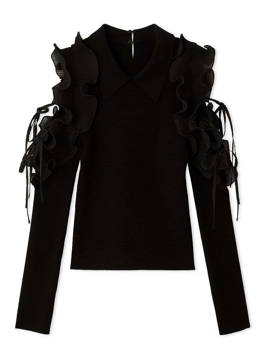 定番人気のフェミニンなプリーツフリルニットにプレッピーな襟デザインをプラス