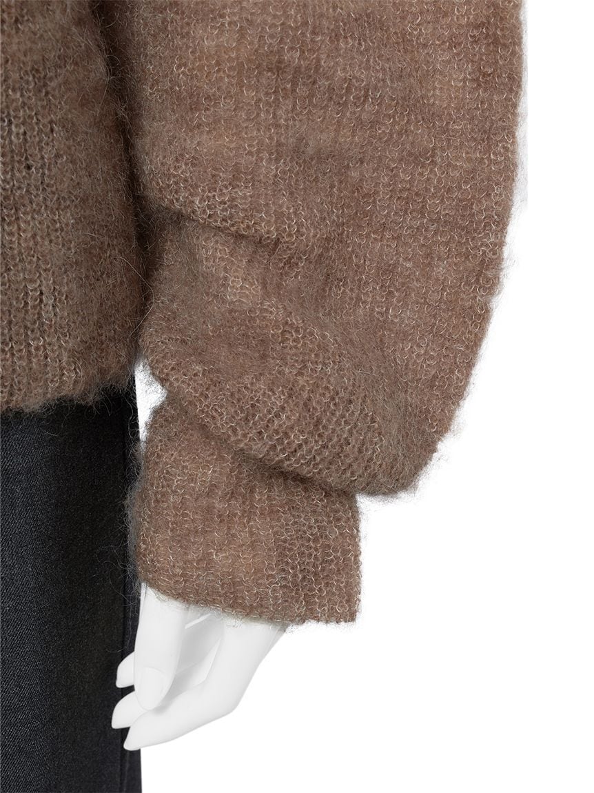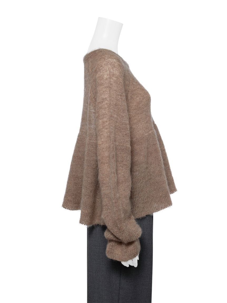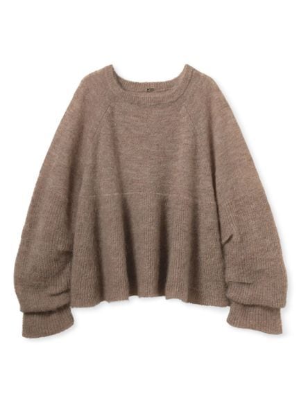 大人気のペプラムシルエットに、立体的な袖がモード。軽いモヘア糸で編み立てた、ふんわりプルオーバー