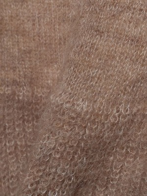 毛足のあるモヘアと羊毛を使った、ふんわりとした糸を使用。さらに起毛加工をかけているので、よりソフトな肌触りに仕上がっています。