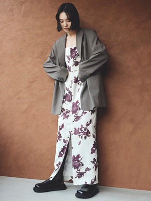 ストレートシルエットのキャミソールワンピースは、バックの開きデザインや細い紐のディテールがセンシュアルさを表現。