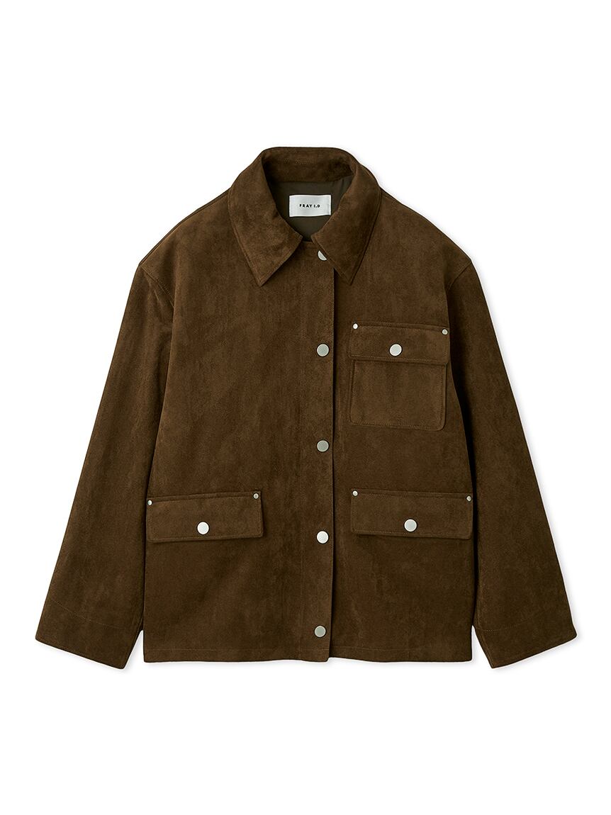 CMLは、トレンド色のフェイクスエード。襟も同じ素材でソリッドに仕上げています。